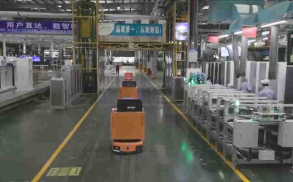 为车载冰箱物流配送打造的智能解决方案,,包含产中物流通过潜伏举升AMR搬运至线边,,产后成品物流智能仓储,,,流程包含产中物流智能齐套入库,,,,线边安灯叫料AMR智能配送至线边,,,成品入库、、、、出库,,通过无人堆高车机器人,,,智能仓储管理替代人工作业管理,,实现更高存储、、、、更高效率、、、、更具柔性化的解决方案。。。。